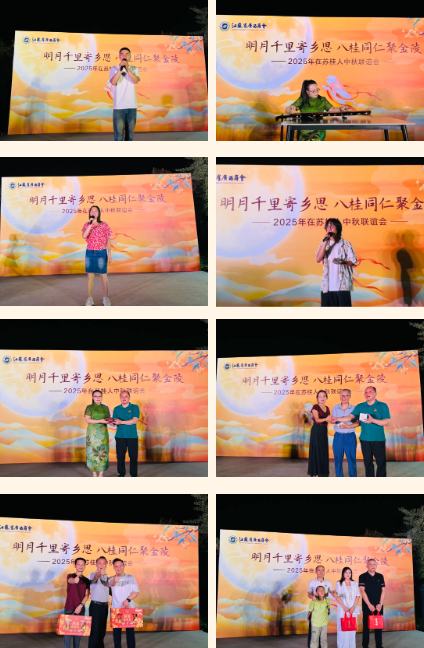 10月5日下午,江苏省广西商会在南京市江宁区新记渔村精心举办了“明月千里寄相思,八桂同仁聚金陵”——2025年在苏桂人中秋联谊会。140多位来自南京、南通、无锡、常州、扬州、盱眙等地的商会会员和乡贤欢聚一堂,以乡音共叙桑梓情,借明月同庆团圆节。