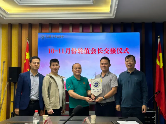 8-9月轮值会长刘奕胆对轮值期间的走访企业、举办教师节和中秋节联谊和支持家乡政府的招商活动、以及商会组团考察广西南宁、河池等方面的工作进行了总结,并与下任轮值会长交接10-11月商会待完成工作及其他相关事宜。随后举行了轮值旗帜移交仪式。